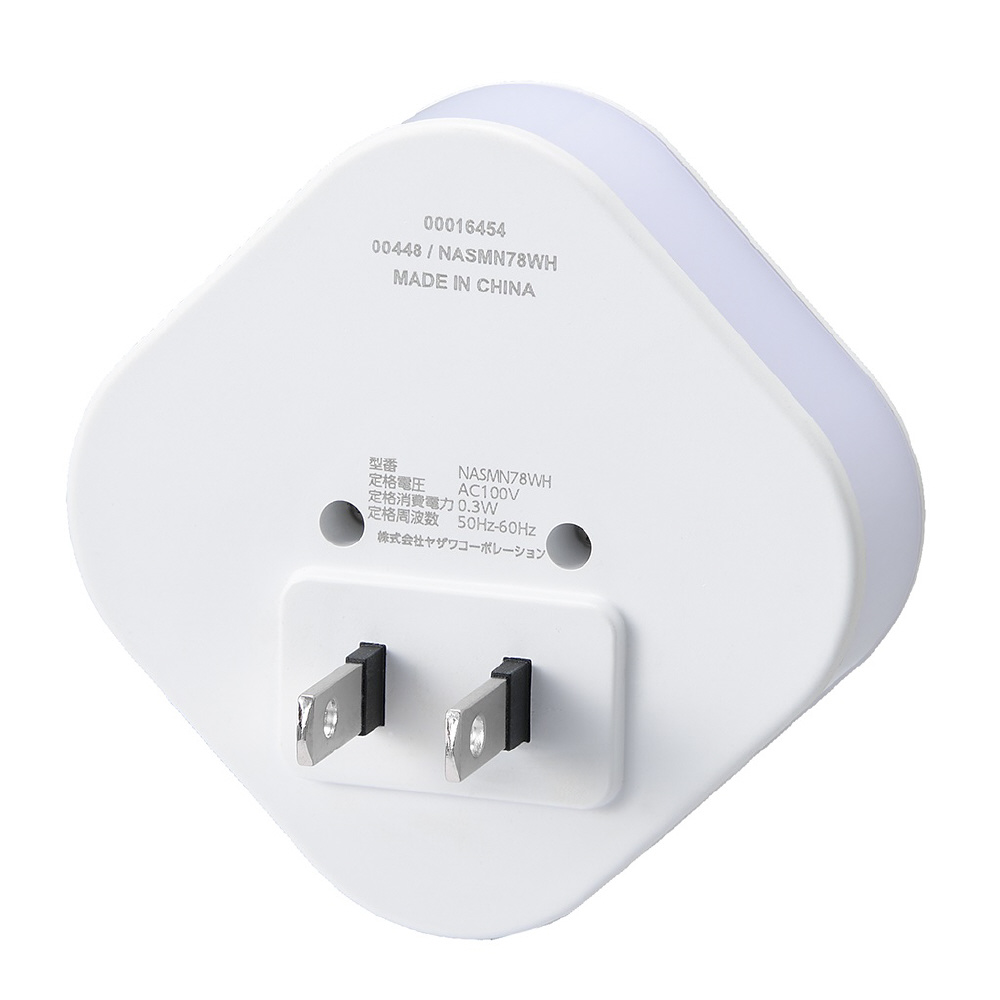 コンセント式人感明暗ナイトライト丸角型 NASMN78WH LED(電球色・2700K)自動点灯約20秒 [電球色 /コンセント式]