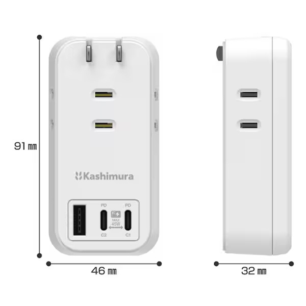 USB PD規格対応USB Type-Cポートは最大PD45Wの出力となります。