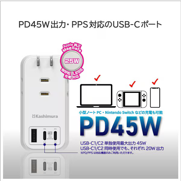 MagSafe ワイヤレス充電器 25W 出力、Nintendo Switch 映像出力、小型ノートPC の充電に対応できます。