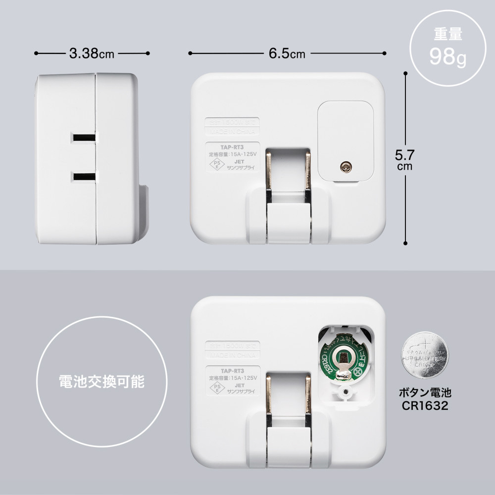デジタル式タイマーコンセント 折りたたみ式プラグ 24時間/曜日設定可能 電力/料金表示機能付 節電 接続機器保護 防犯対策 チャイルドロック搭載 ホワイト TAP-RT3