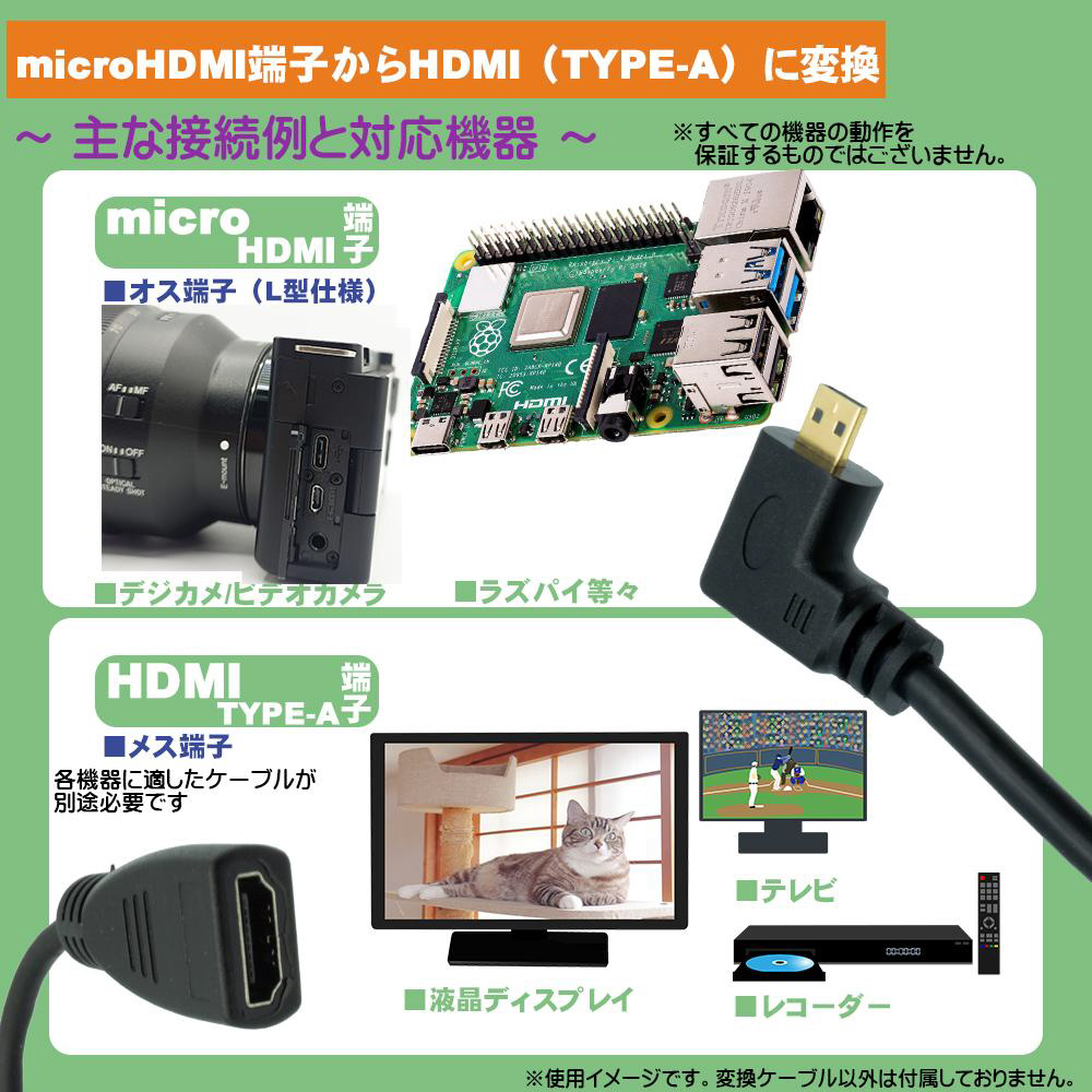 microHDMIを通常のHDMIに変換することでデジカメ、ビデオカメラ、ラズパイ等のmicroHDMI搭載機器を