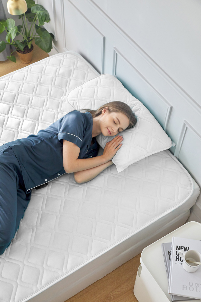 マットレスの寿命は汚れと湿気に大きく影響を受けます。マットレスを敷きパッドで保護していただくことで、キレイなまま長く使えるようになります。衛生的かつ経済的です。なお当敷きパッドは洗濯機で丸洗い可能です。