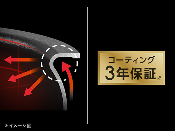 内側は2層のノンスティックコーティングでごはんのこびりつきも防ぎます。