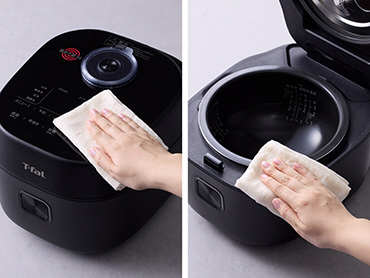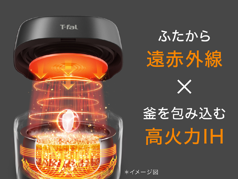 ティファール独自のふたから直接放出する遠赤外線は、一粒一粒のお米に直接熱を届け、