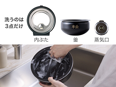 さらに厚みを持たせた釜がじっくりと熱を蓄え、お米本来のおいしさを存分に引き出します。