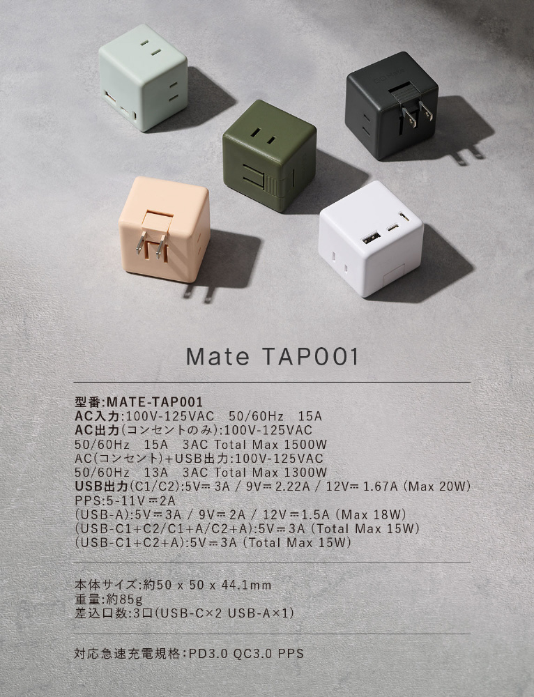 PD20W Mate TAP 001 Type-C×2、USB-A×1 カームブルー MATE-TAP001-SPK