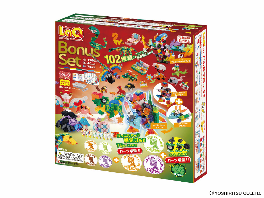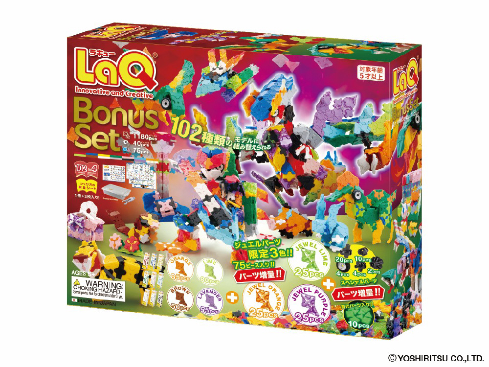 作品例はなんと102種類!パーツがバランスよく入っているので、LaQ入門にも上級者にもオススメの大満足キットです。