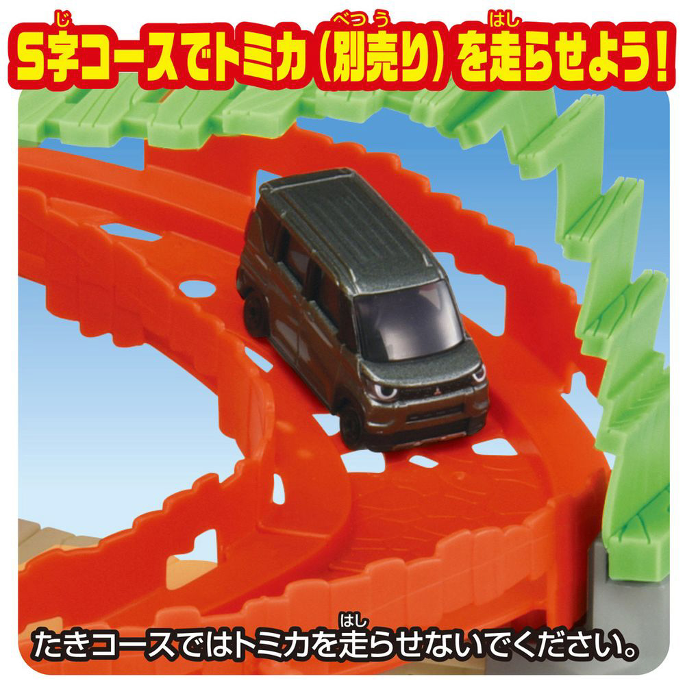 (2)トロッコはS字コースとたきコースの2種類のコースで遊べる!S字コースは「トミカ」も走らせることができる!