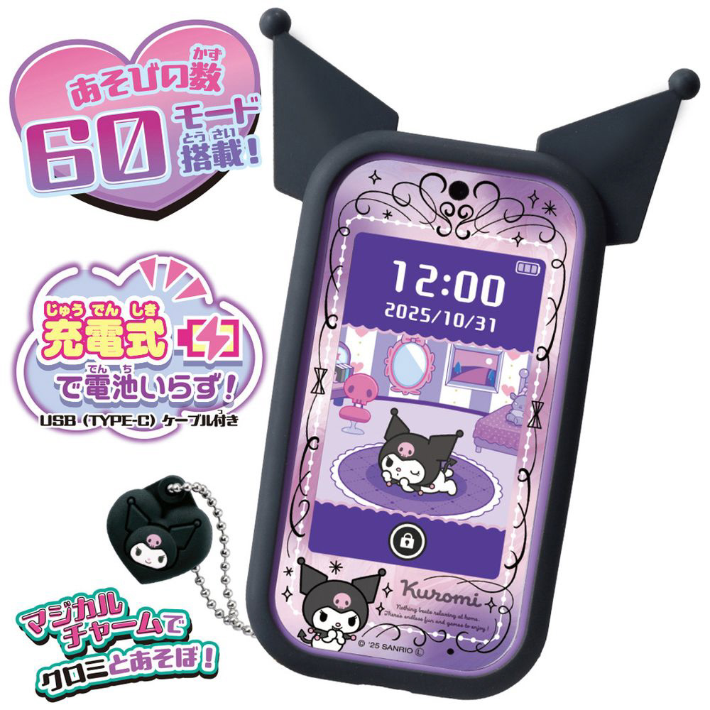 薄くて軽い充電式の本体に、クロミ型のカバーとマジカルチャームがついているよ。