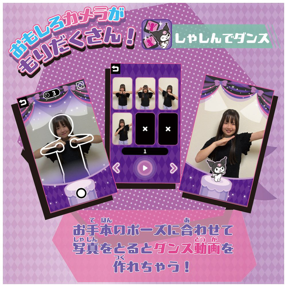 ・「しゃしんでダンス」アプリではお手本のポーズで写真を撮影していくと、曲に合わせたダンス動画が作れちゃう。