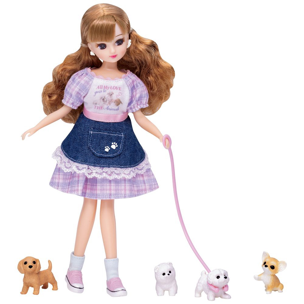 ペットシッターのお洋服を着たリカちゃんがセットになっています。