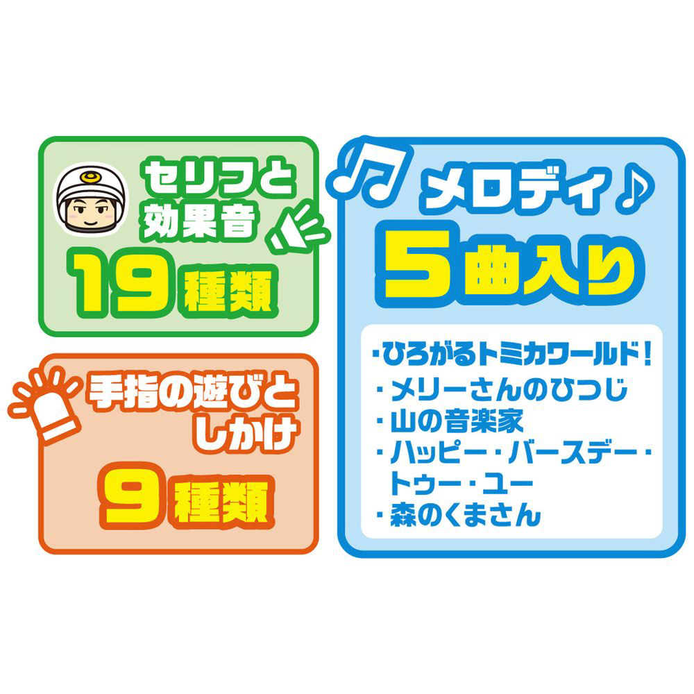 ■メロディは5曲 (収録曲例:ひろがるトミカワールド!や森のくまさんなど)