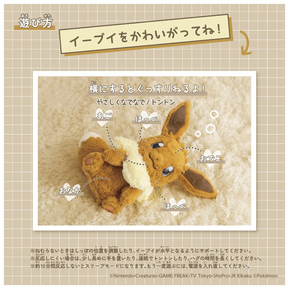 ※ねむらないときはしっぽの位置を調整したり、イーブイが水平となるようにサポートしてください。