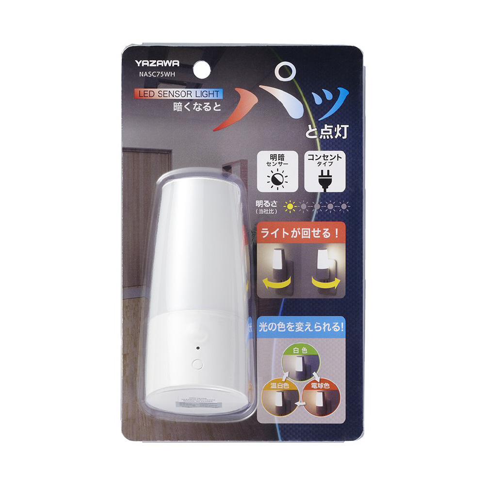コンセント式明暗ナイトライト調色・回転タイプ NASC75WH 調色3段階(白色〜電球色〜恩白色) [コンセント式]
