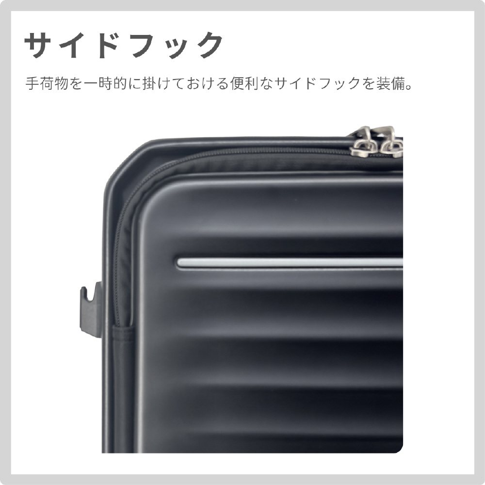 手荷物を一時的に掛けておける便利なサイドフックを装備。荷物の取り扱いがより簡単になりました。
