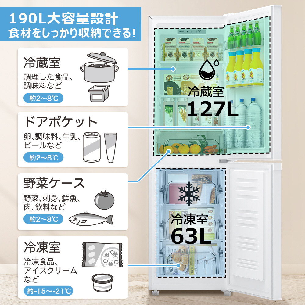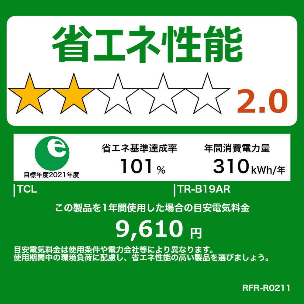 冷蔵庫 ホワイト TR-B19AR [幅48.2p /190L /2ドア /右開きタイプ]