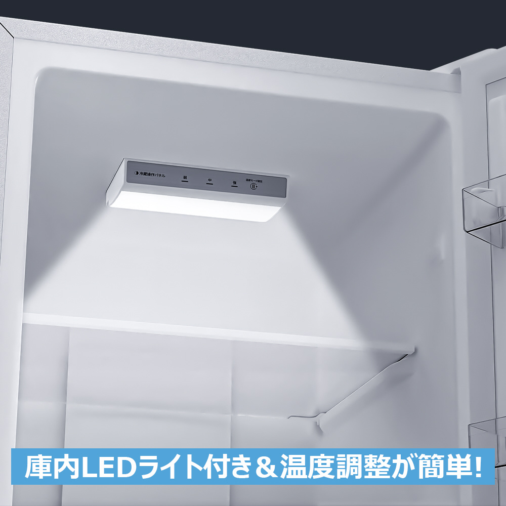 ■庫内を明るく照らすLEDライト搭載、温度設定もかんたん操作