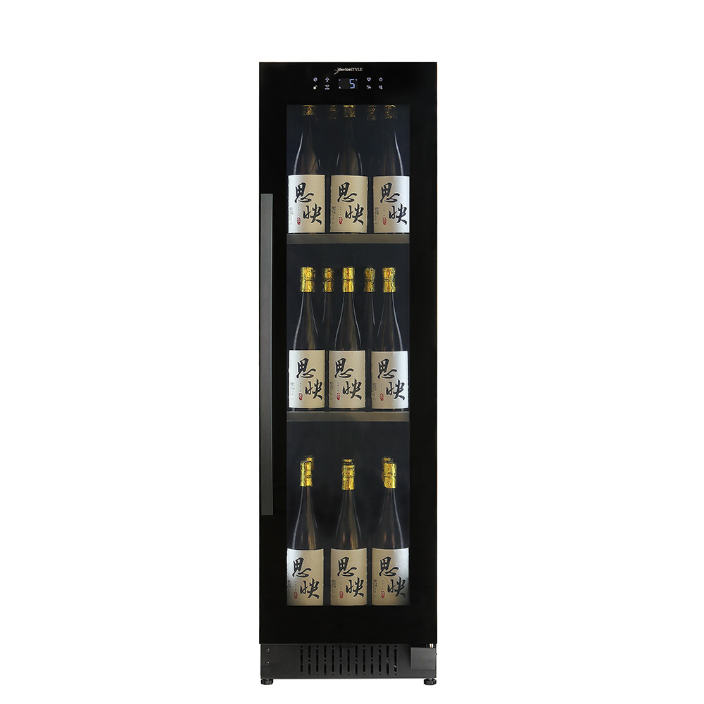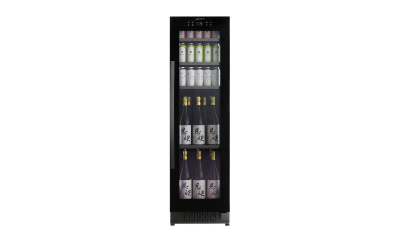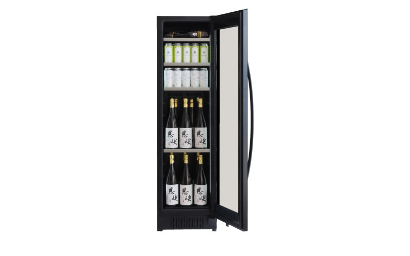 また、庫内温度設定範囲を2~20℃とし、ワインだけでなく日本酒や缶飲料などを縦置き収納できる「お酒シェルフ」を標準装備。庫内を美しく彩る調光機能付きの大型LED庫内灯、シェルフの落下を防ぐ棚ストッパや、ドアが周囲の機器と干渉しにくい120°ドアストッパ、ドア閉め忘れアラームなど実用的な機能を多く備えた、スマート&フレキシブルで高性能な「くらしに溶け込む」美しいスマートマルチセラーの登場です。