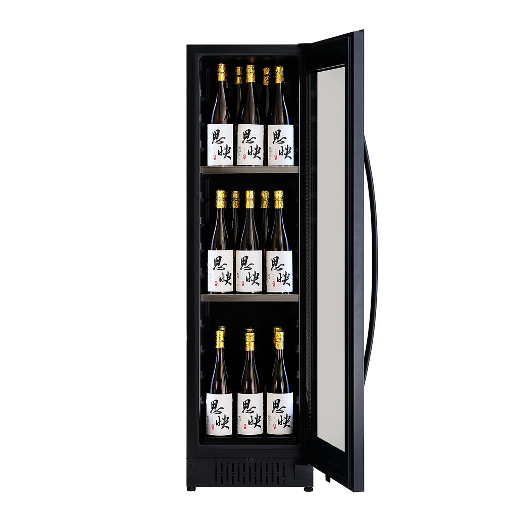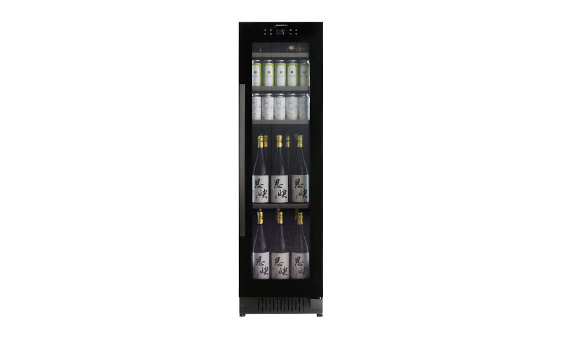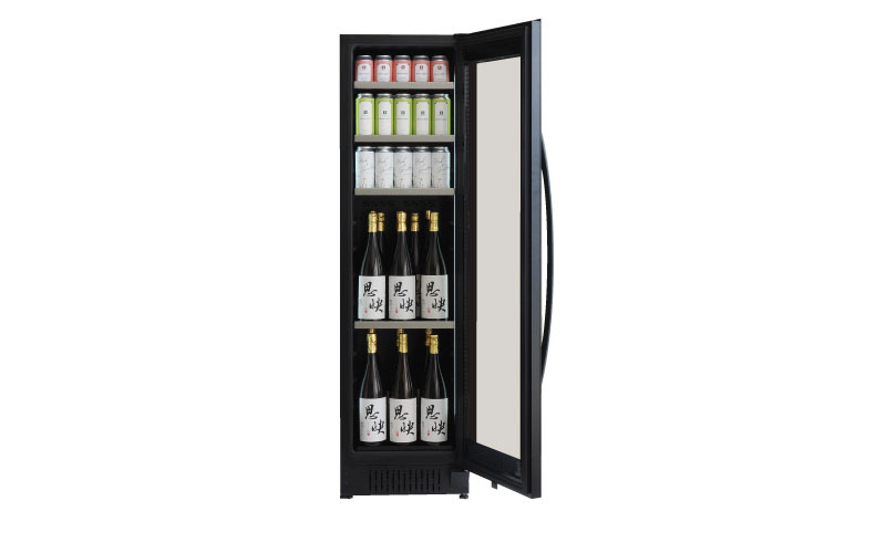 設置場所を選ばない、幅わずか450mmの筐体に棚ピッチ93mmを確保。ワイドな庫内にはワインの横置き60本*3収納をはじめ、一升瓶、四合瓶や缶飲料の縦置き収納にも対応*4しています。