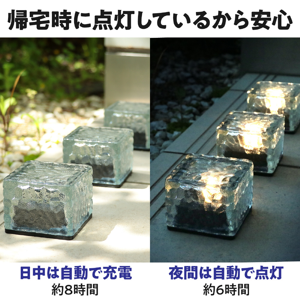 約6時間の照明時間で、玄関や庭を優しく照らし、夜間の帰宅時に安心感を提供します。