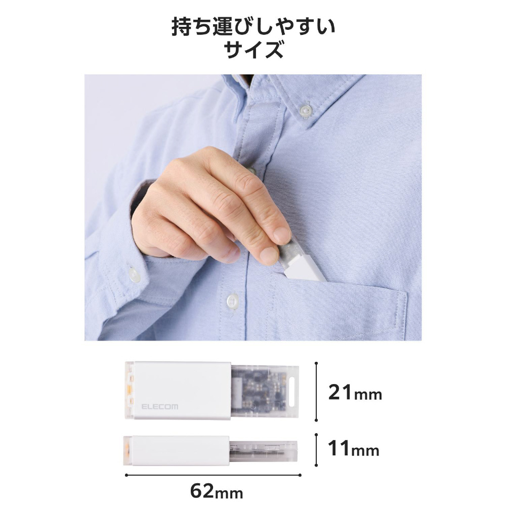 開封後、挿すだけですぐに使用可能。出荷時にexFAT形式でフォーマット済みのため、iPhone、Androidスマートフォン、Windowsパソコン、Macなどで挿してそのまますぐに使えます。ケーブルやアダプターなどを別途用意する必要はありません。