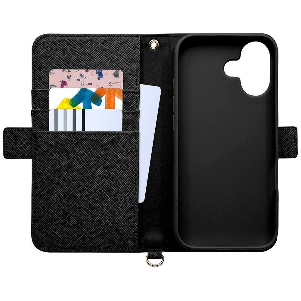iPhone 17(6.3インチ) ケース ハンドストラップ手帳 ブラック 8858IP5ABHSBK