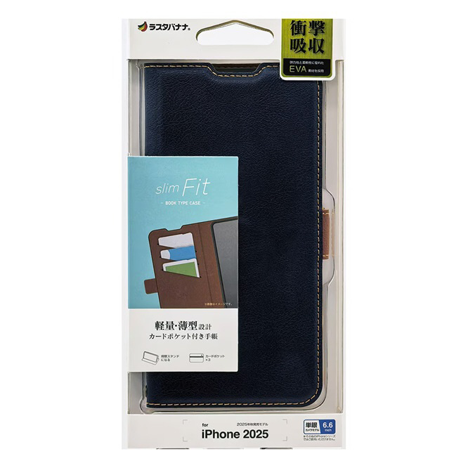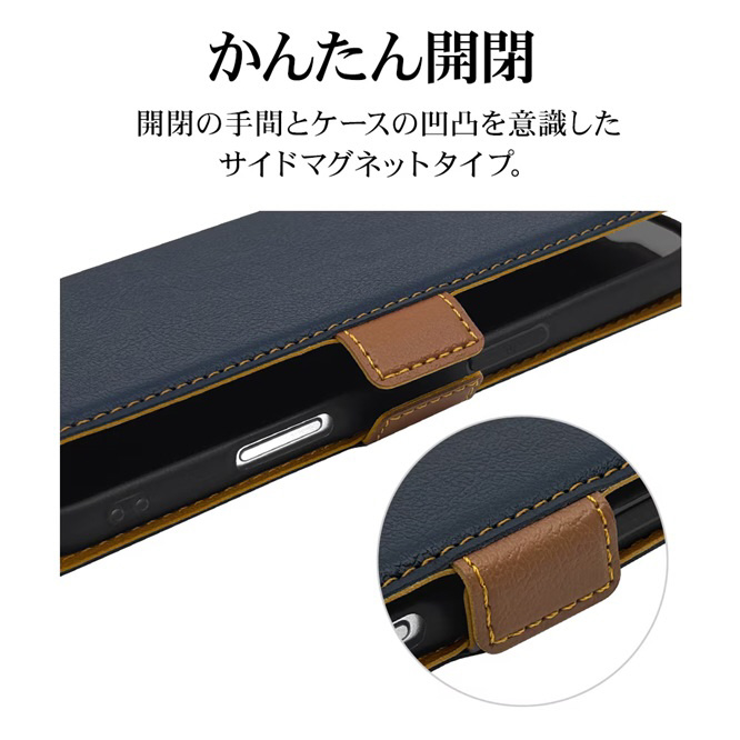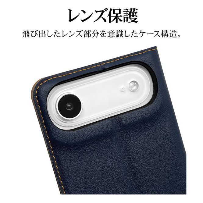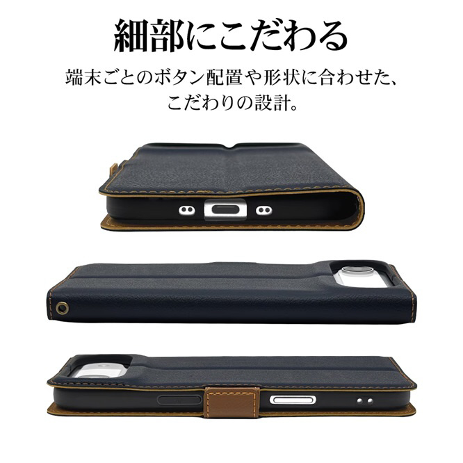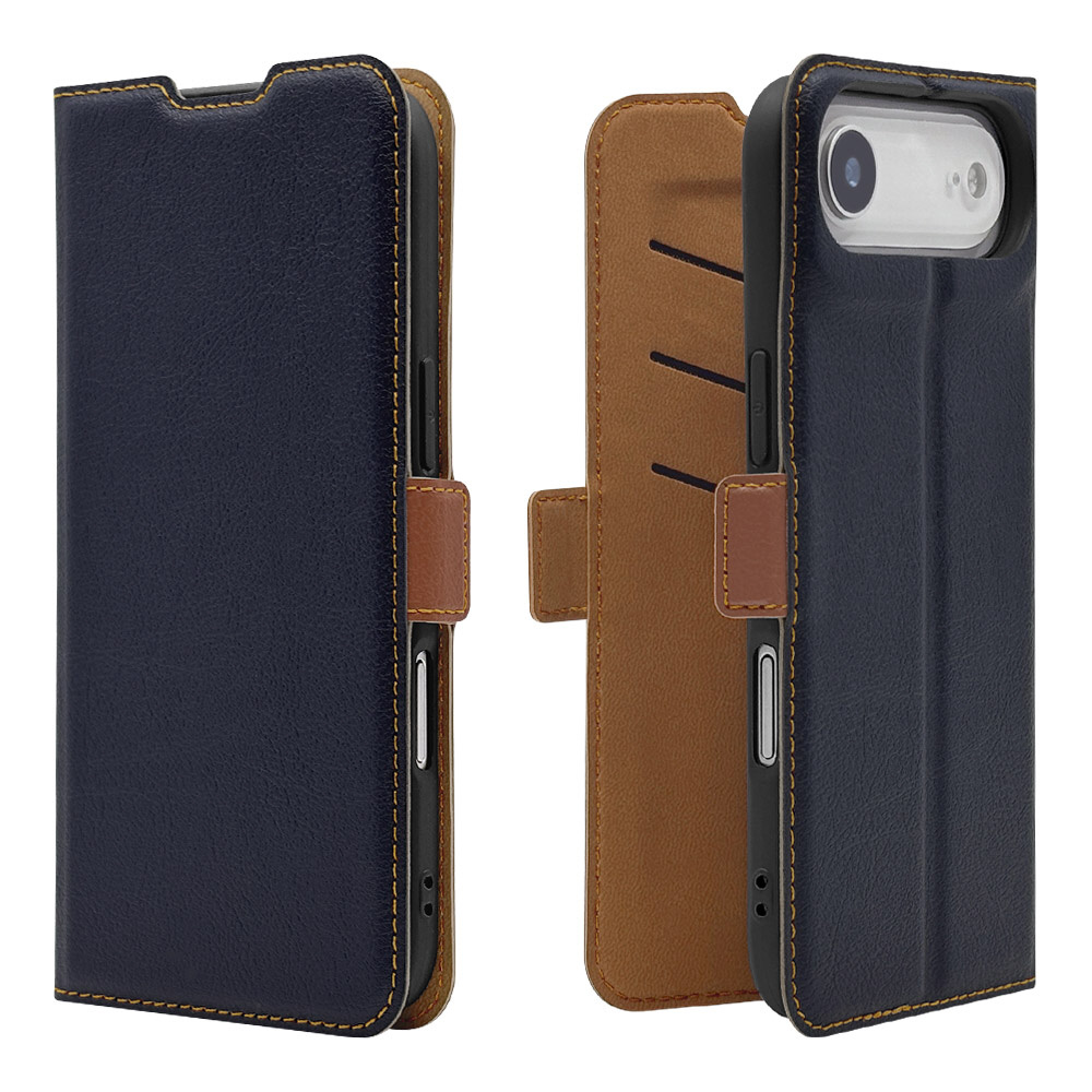 iPhone Airケース 薄型手帳 サイドマグネット ネイビー×ブラウン