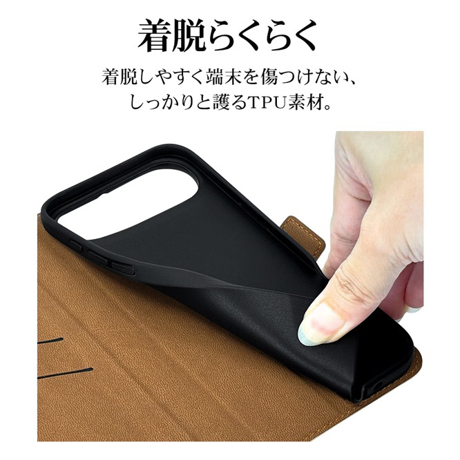 本製品は液晶画面側と背面側の両面を保護できる薄型で持ちやすい手帳型ケースです。