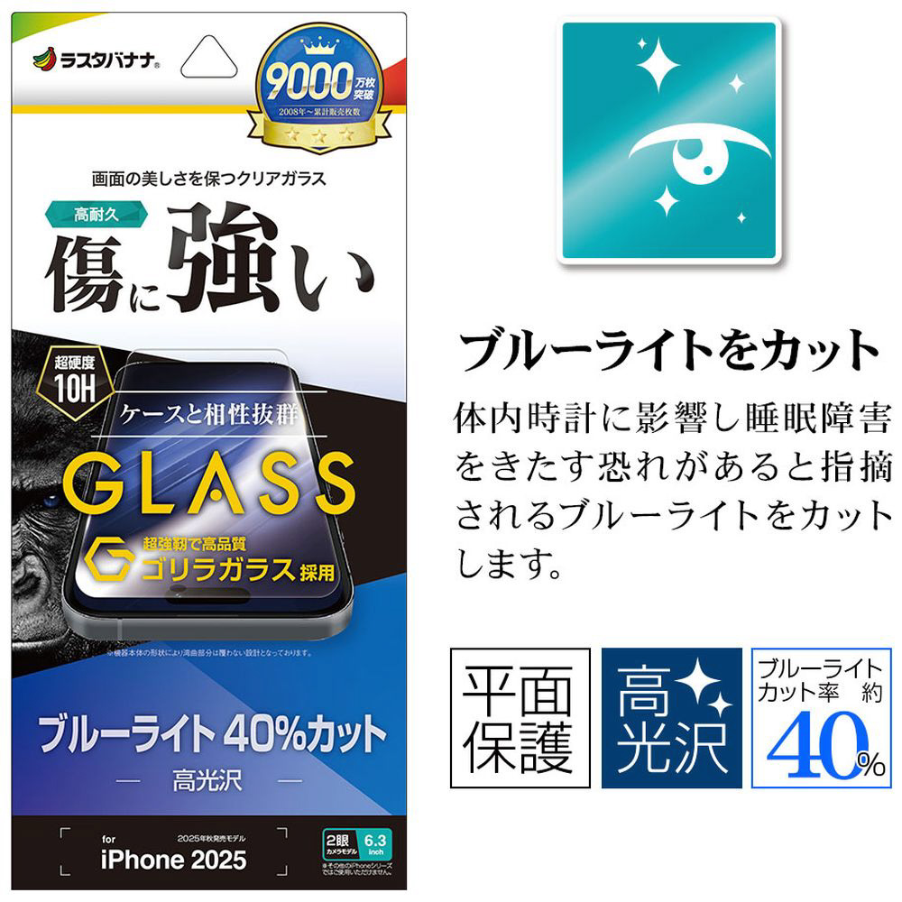 iPhone 17(6.3インチ)フィルム ゴリラガラス ブルーライトカット GGE4867IP5A