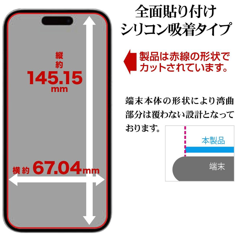 本製品の形状は、機器本体の形状により湾曲部分は覆わない設計となっております。