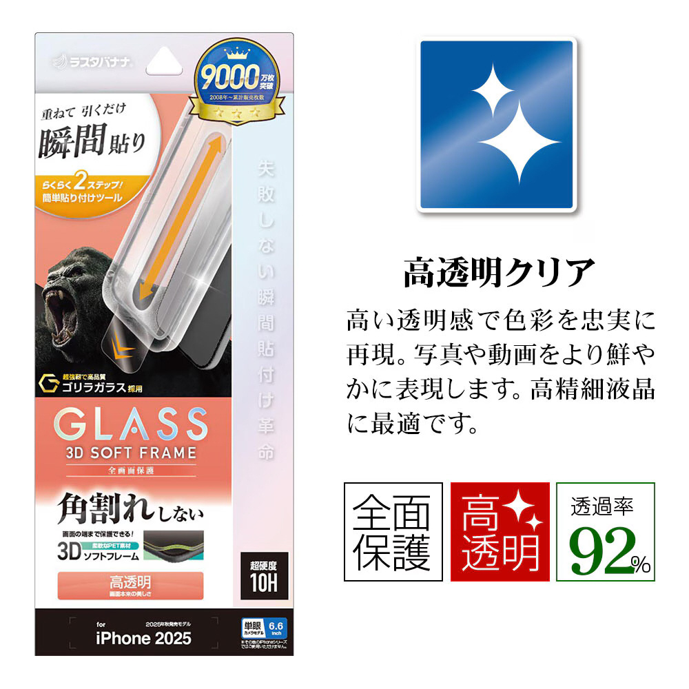 iPhone Airフィルム 貼付革命 ソフトフレーム ゴリラガラス 光沢