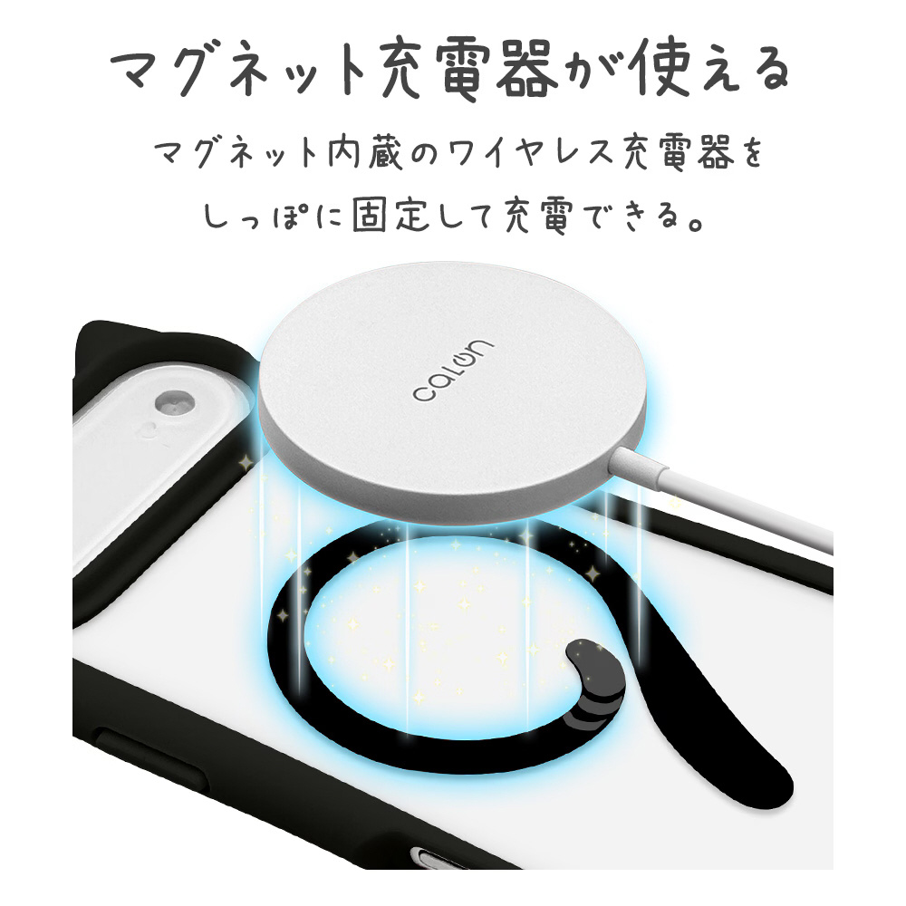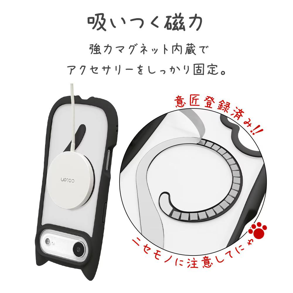 本製品はMagSafeアクセサリをケースの上から固定できる、かわいい猫耳つきハイブリッド背面ケースです。