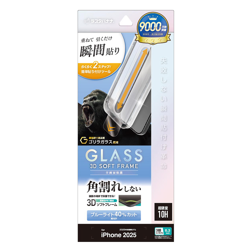 iPhone 17 Proフィルム 貼付革命 ソフトフレーム ゴリラガラス ブルーライトカット