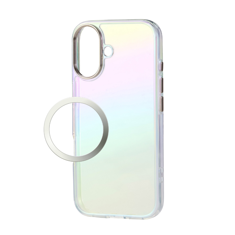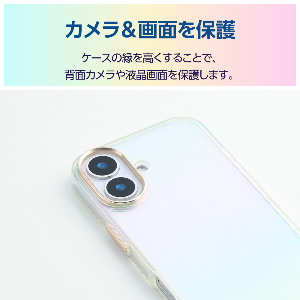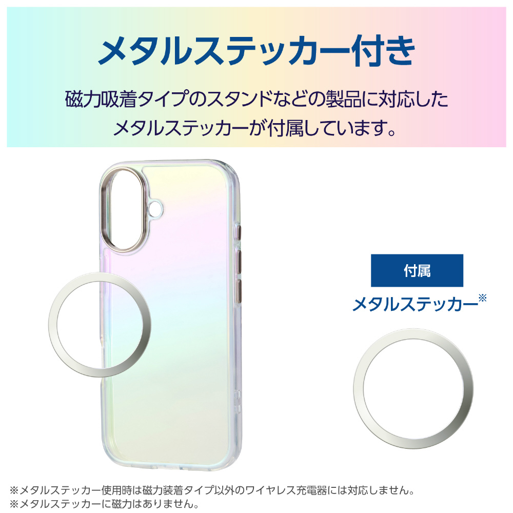 iPhone 17 ケース ハイブリッドケース オーロラカラー メタルリング付 クリア