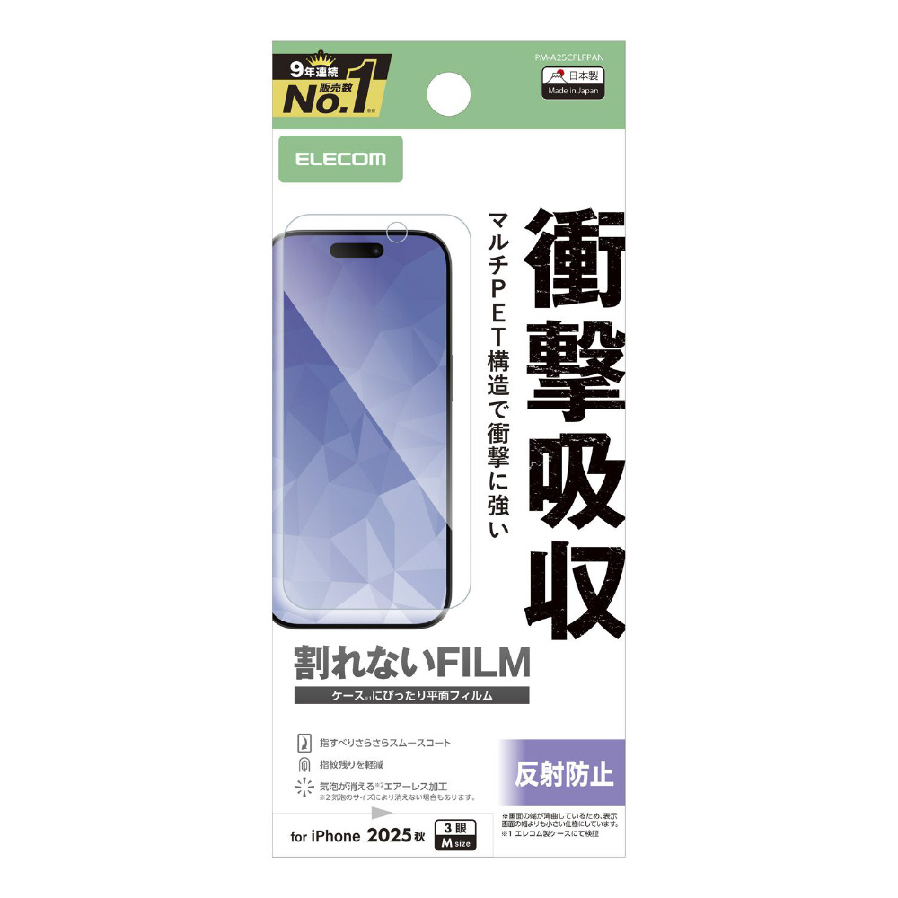 iPhone 17 Pro フィルム フィルム 衝撃吸収 指紋防止 反射防止 クリア PM-A25CFLFPAN