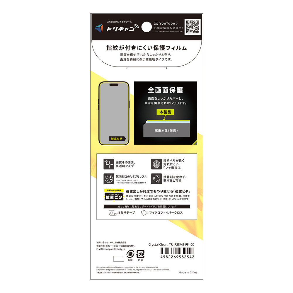 iPhone 17 フィルム 画面保護フィルム 位置ピタ 高透明 TR-IP25M2-PFI-CC