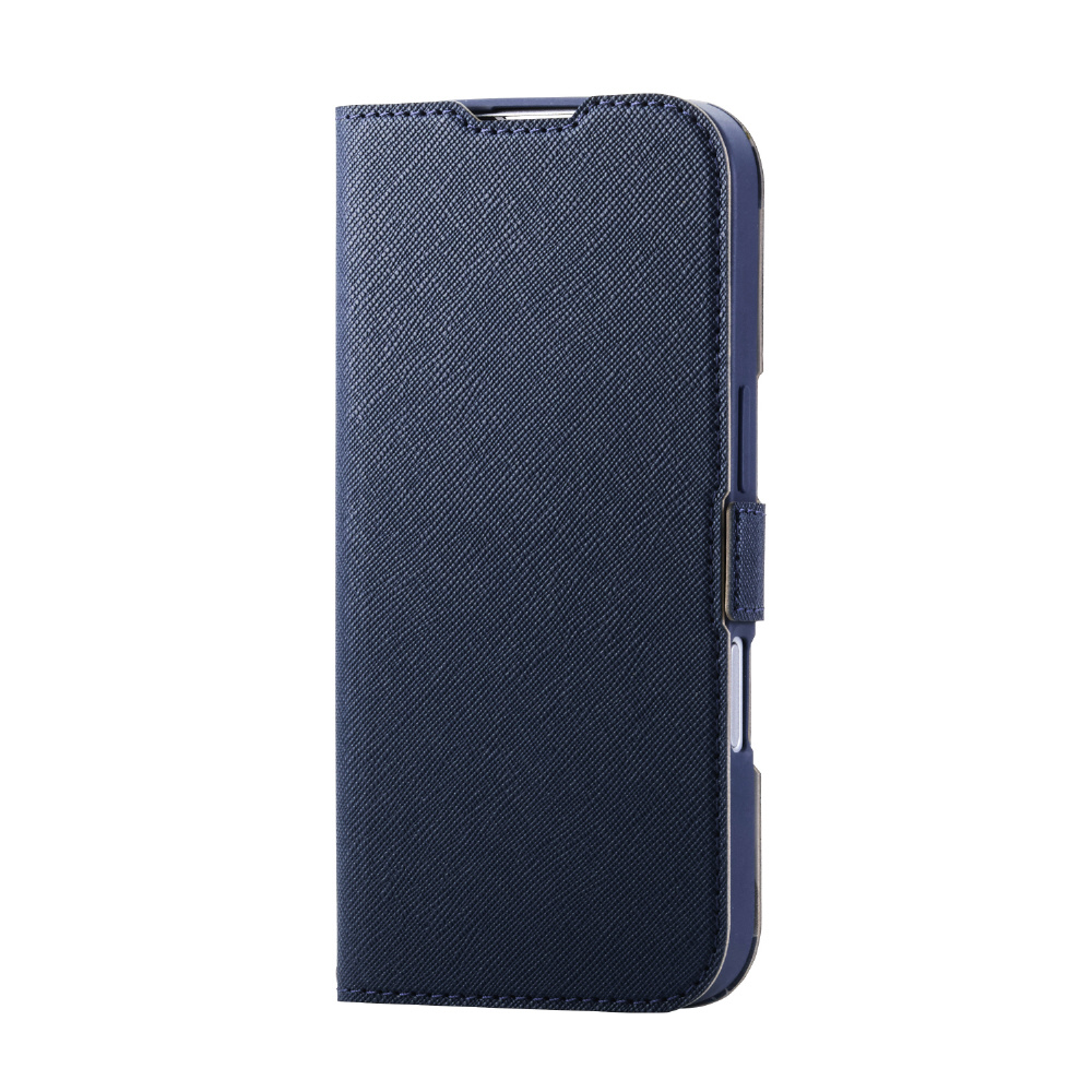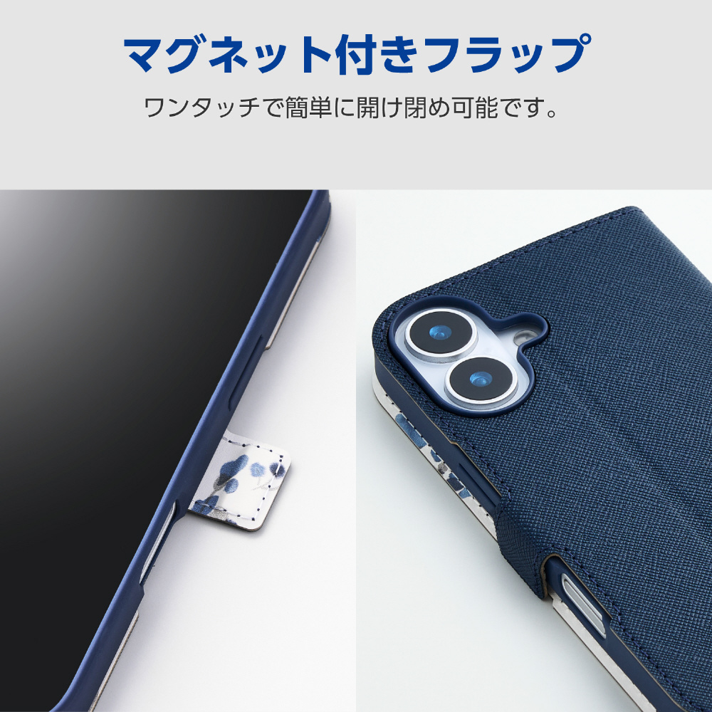 iPhone 17 ケース ソフトレザーケース 薄型 磁石付 フラワーズ ネイビー