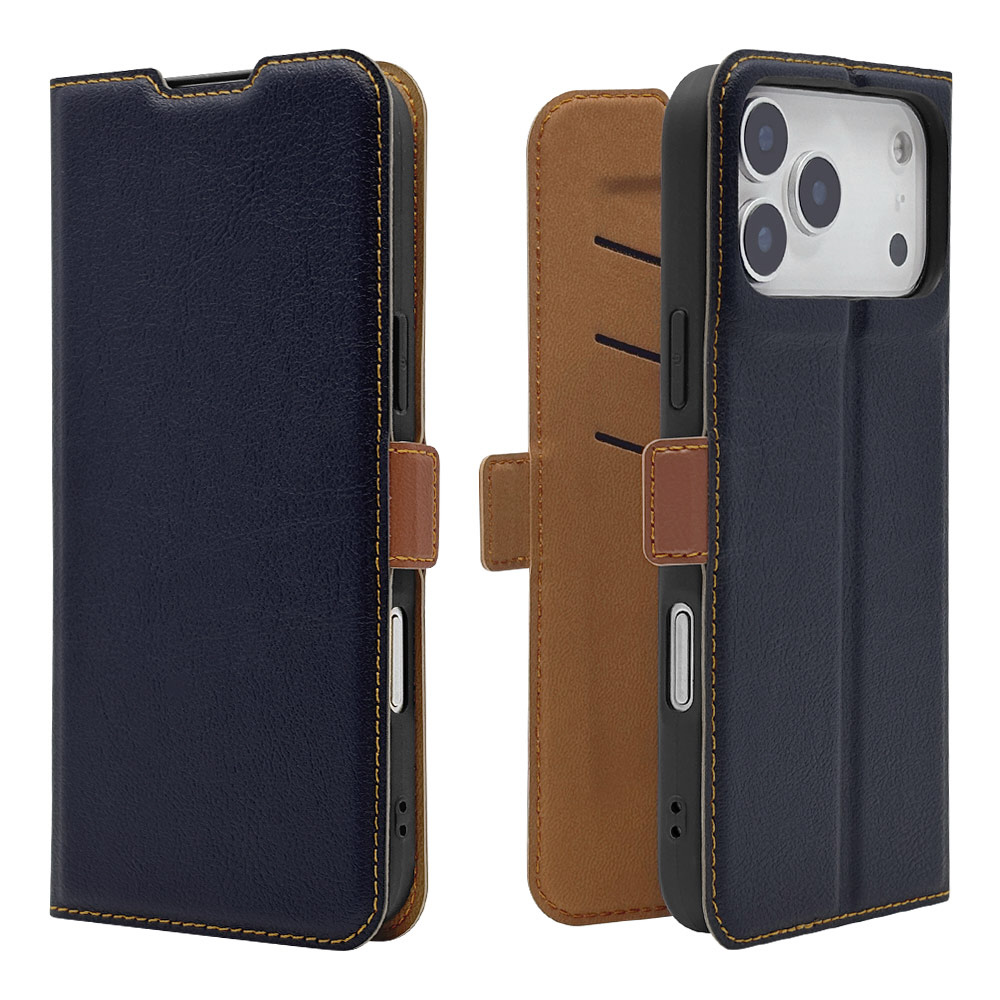 iPhone 17 Pro Max ケース 薄型手帳 サイドマグネット ネイビー×ブラウン