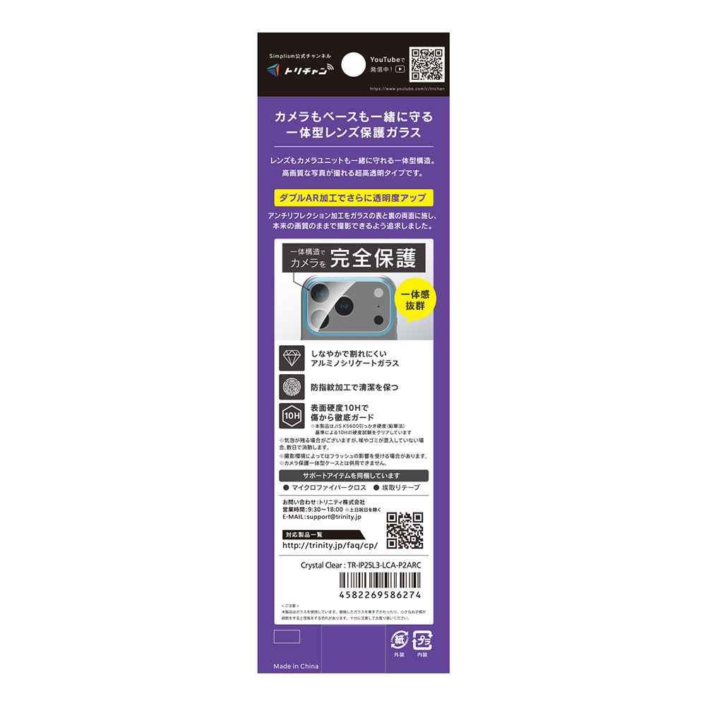 レンズもカメラユニットも一緒に守れる、一体型構造のレンズ保護ガラスです。