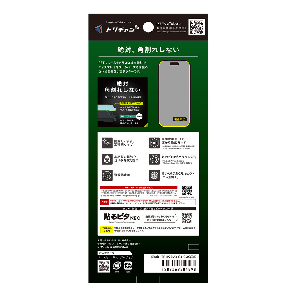 iPhone 17 Pro フィルム [FLEX 3D] ゴリラガラス 高透明 複合フレームガラス ブラック TR-IP25M3-G3-GOCCBK
