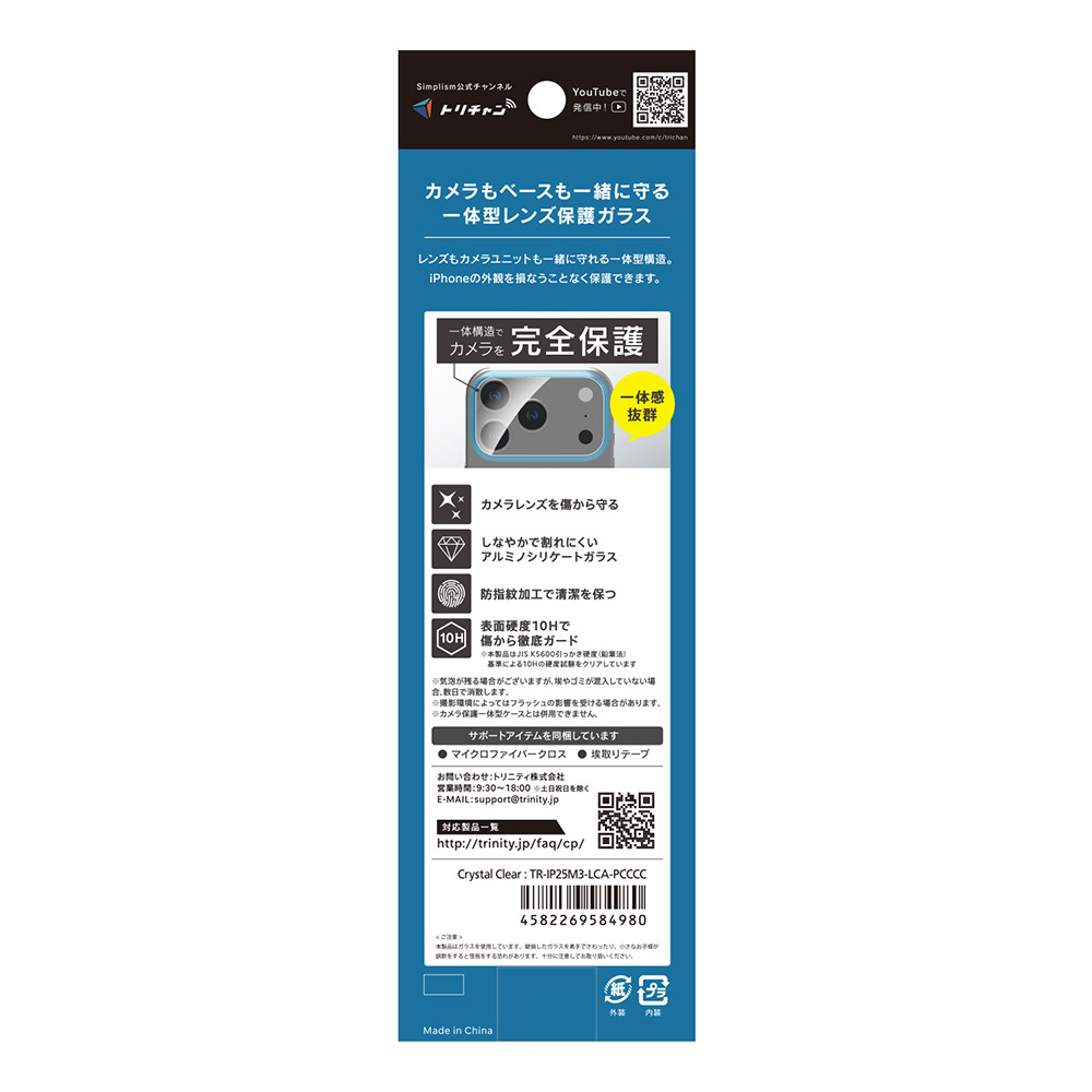 レンズもカメラユニットも一緒に守れる、一体型構造のレンズ保護ガラスです。