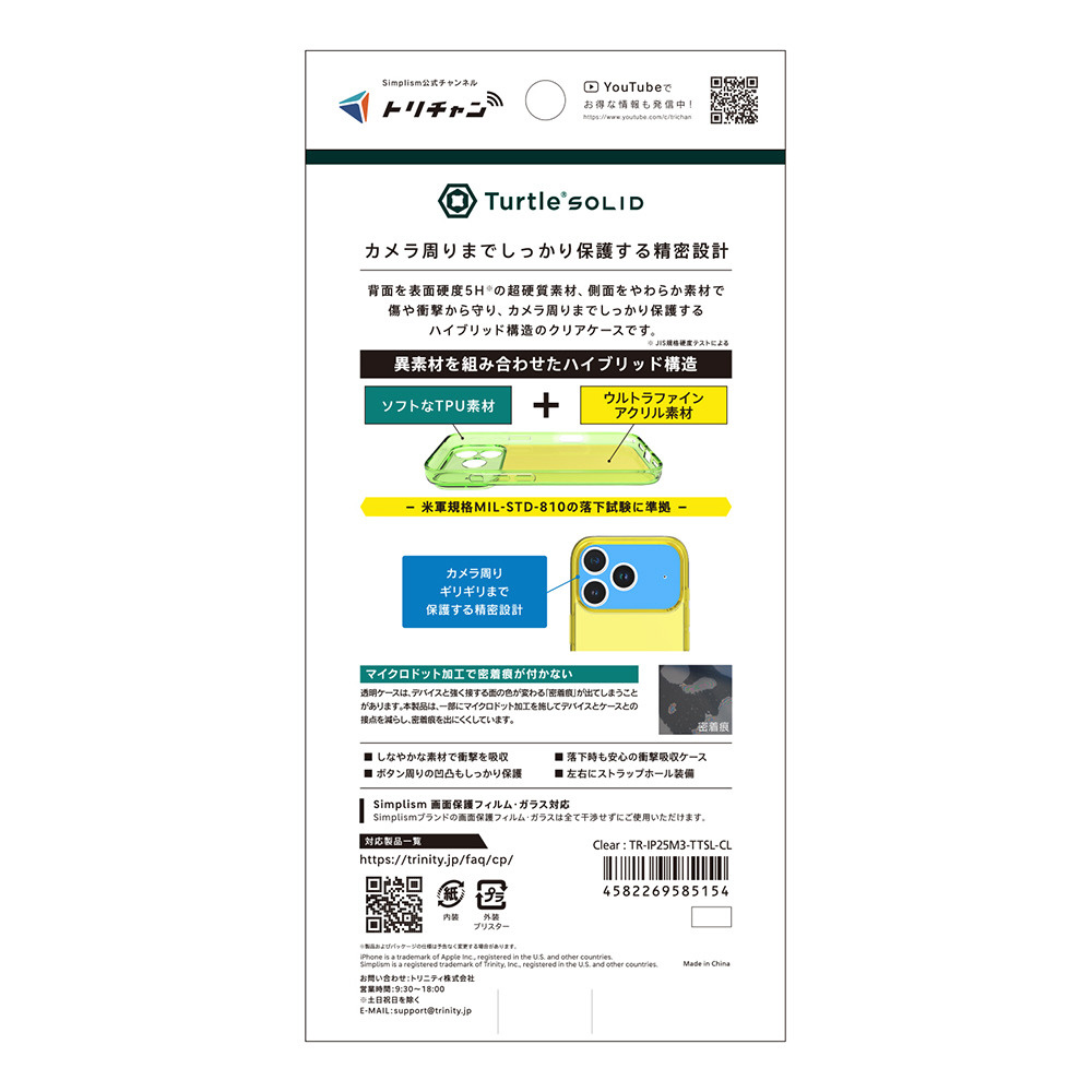 背面を超硬質素材、側面をやわらか素材で守るハイブリッド構造クリアケース。