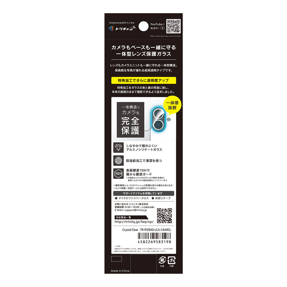 レンズもカメラユニットも一緒に守れる、一体型構造のレンズ保護ガラスです。