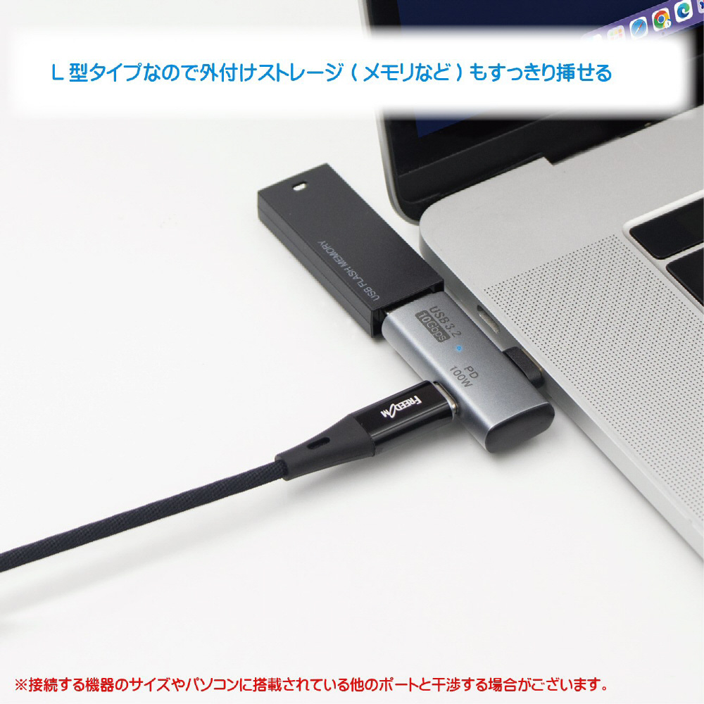※L型タイプのため、ノートパソコンや接続機器によって挿した際、他のポートと干渉する場合がございます。