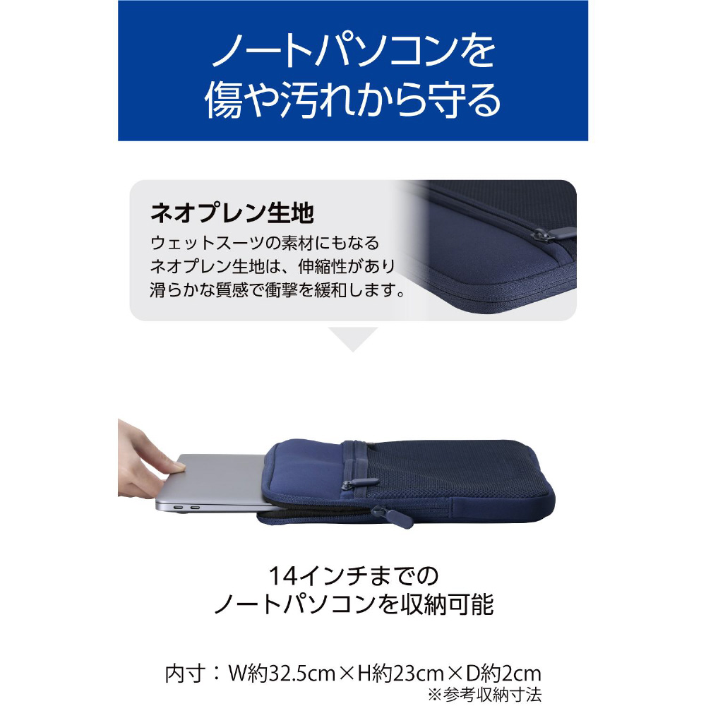 ノートパソコン対応 [〜14.0インチ] インナーバッグ ファスナーポケット ネイビー BM-IBPTNP14NV