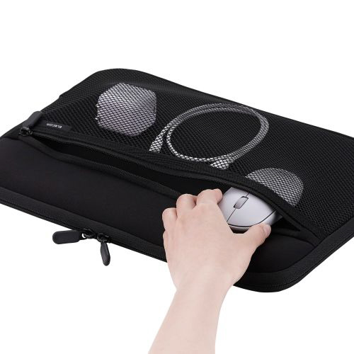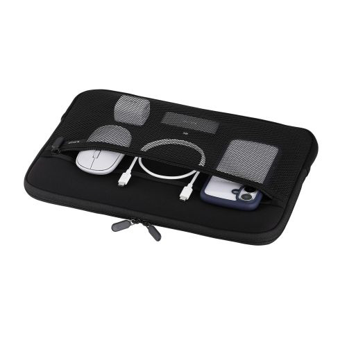 マウスやACアダプターを一緒に収納できるメッシュポケット付き。ガジェットポーチなしでもすっきり整理できます。