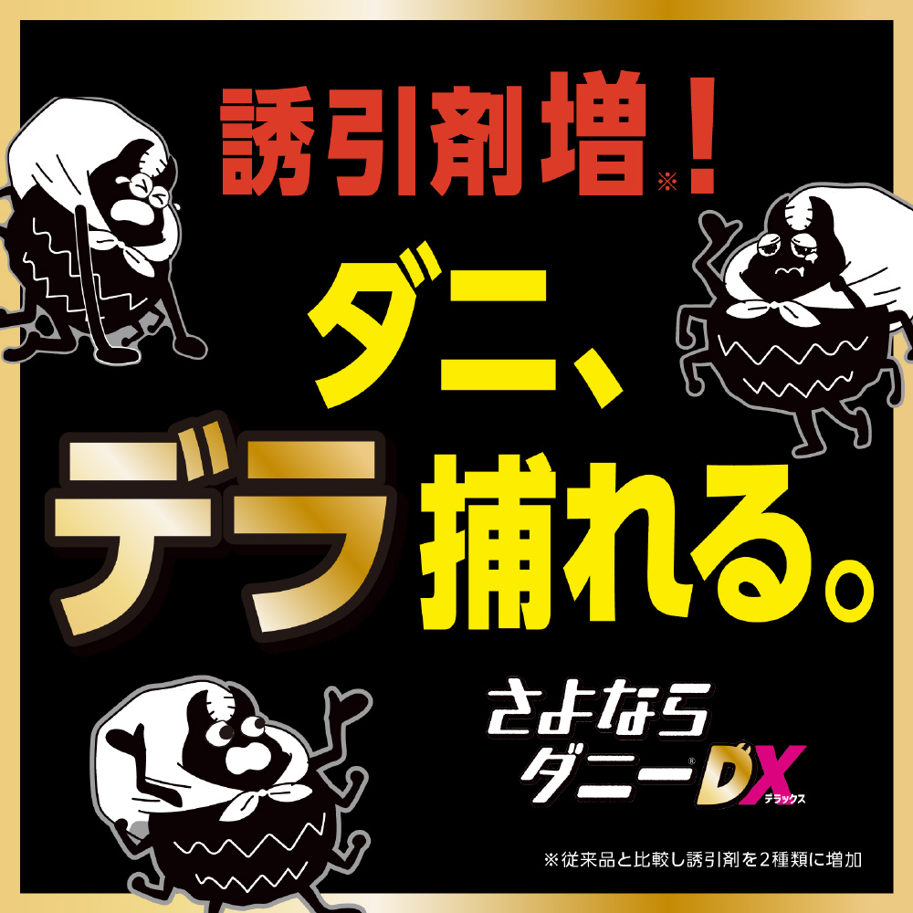 殺虫成分不使用の置くだけでダニを一網打尽!ダニを捕まえたら逃さない立体粘着構造でからめとり逃がさない!