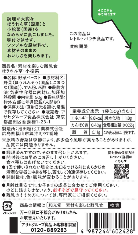 【軽減税商品】素材を楽しむ離乳食 ほうれん草・小松菜 50g 素材を楽しむ離乳食