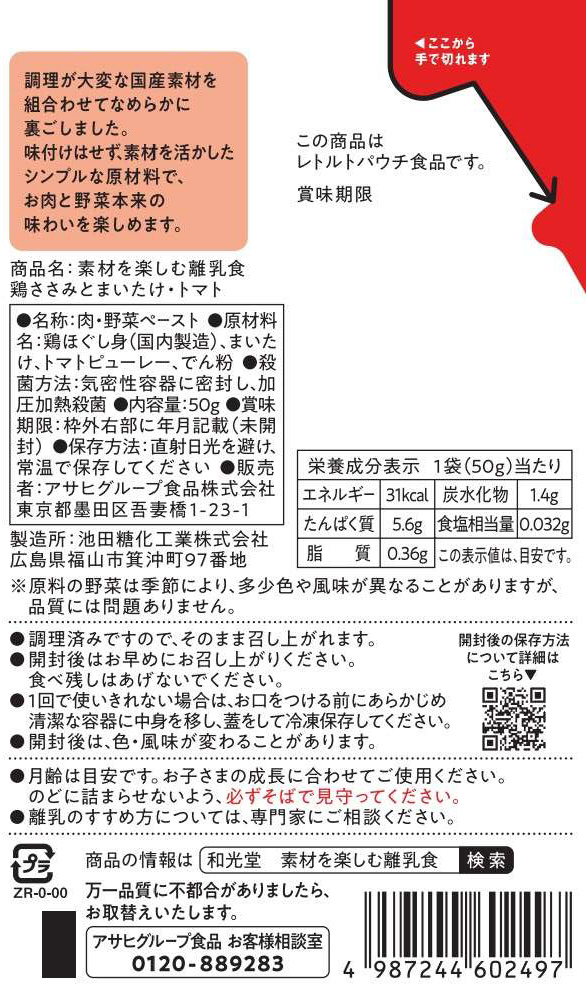 【軽減税商品】素材を楽しむ離乳食 鶏ささみとまいたけ・トマト 50g 素材を楽しむ離乳食