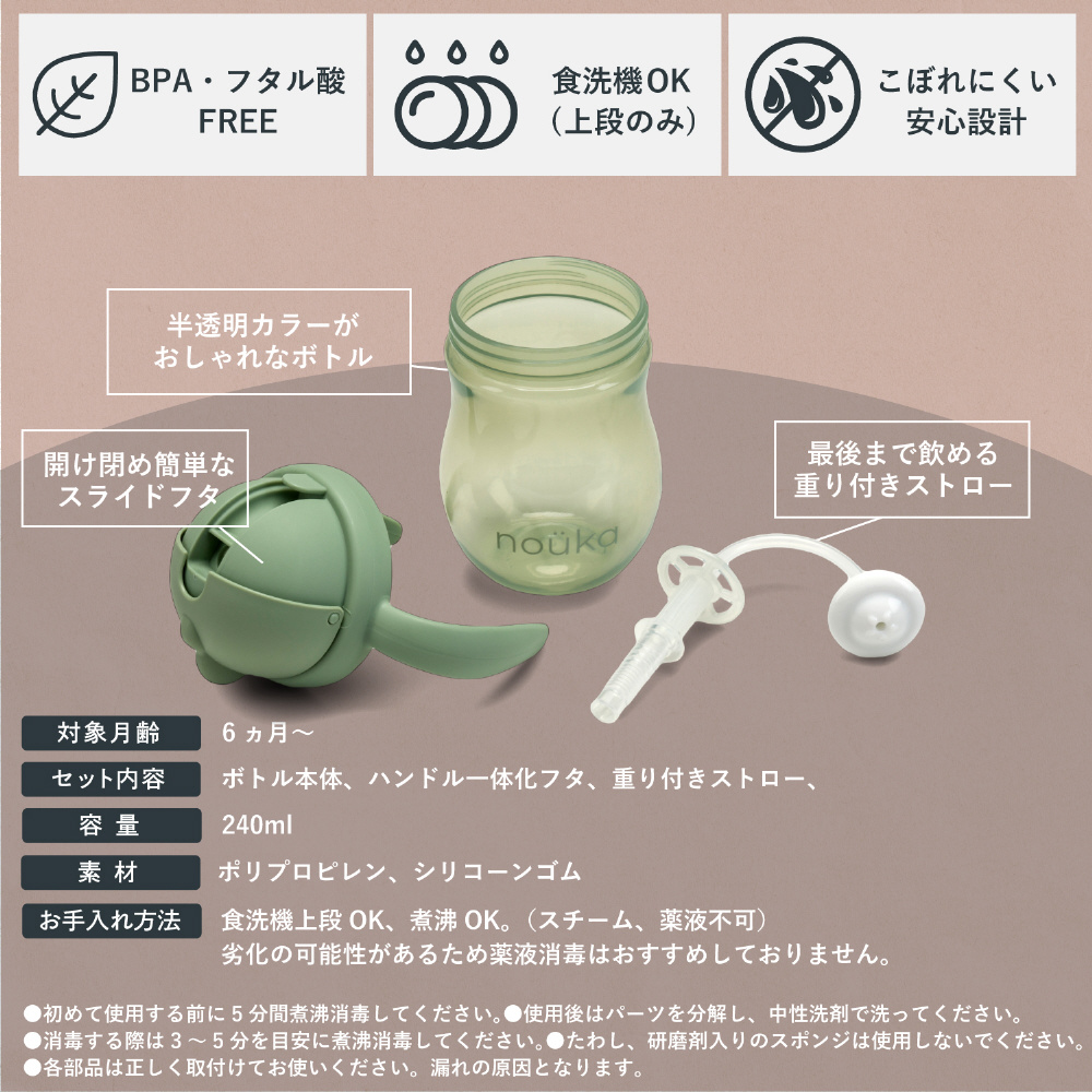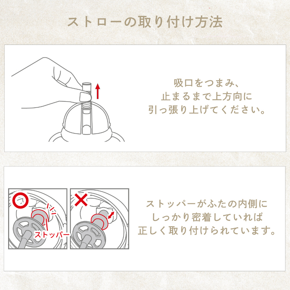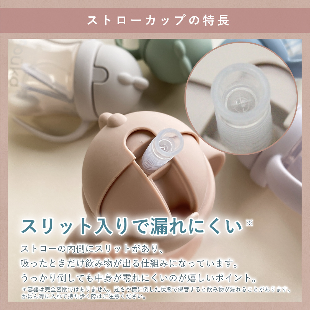 ストローの内側にカット部分があるので、吸った時だけ飲み物が出る仕組みになっています。倒れても中身がこぼれにくく、ストレスフリー。